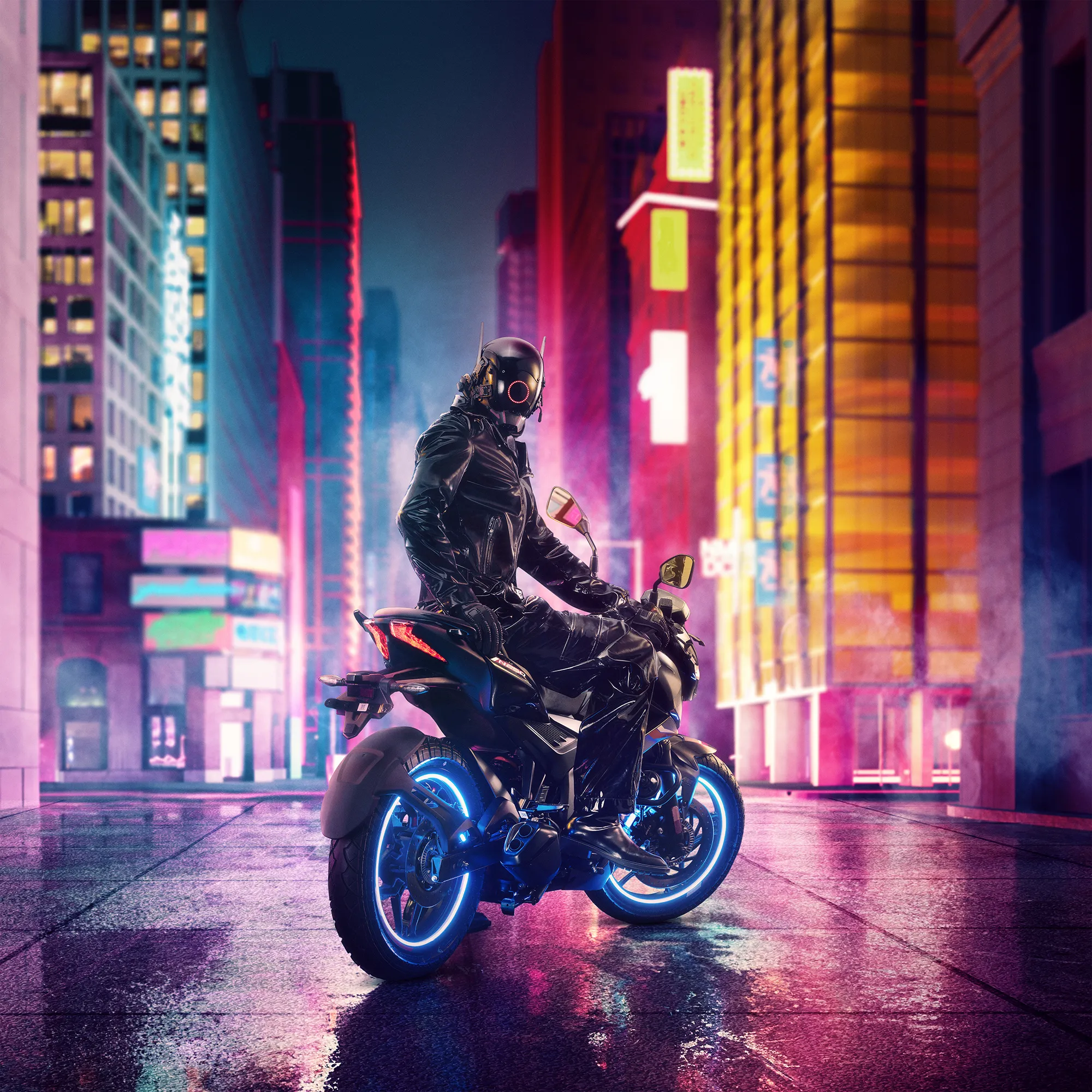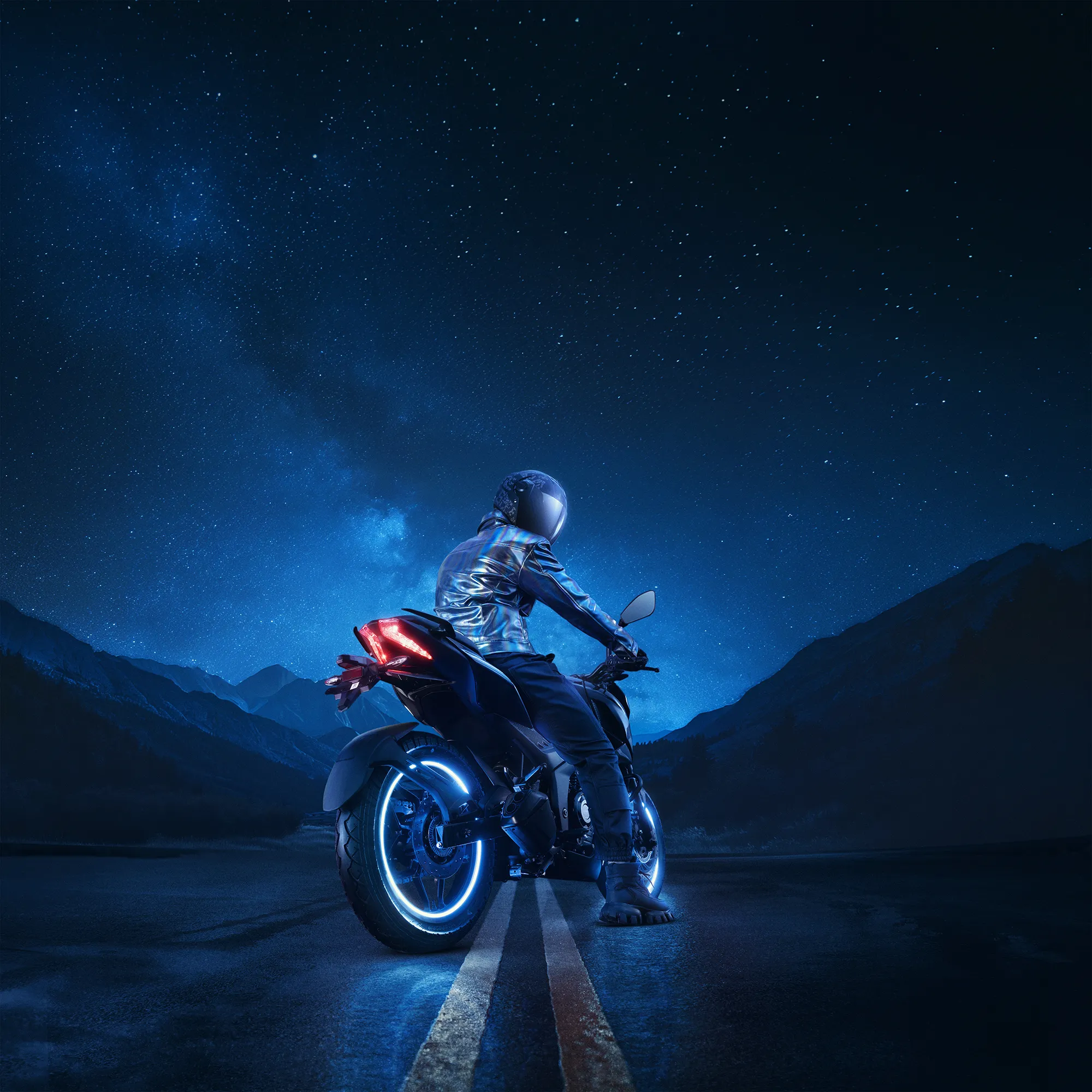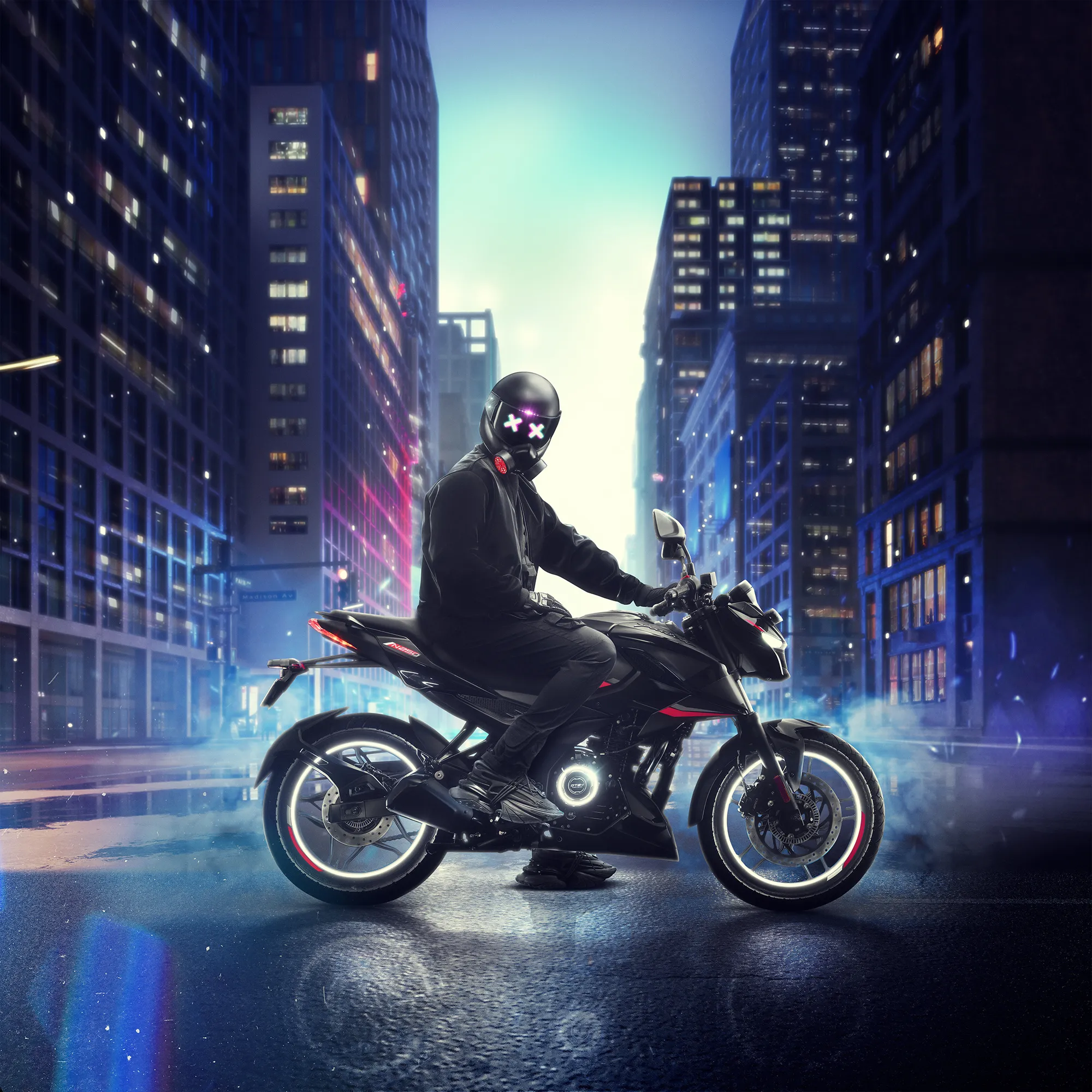 Designed as a mixed-media production, the shoot involved studio-photographed bikes, 3D world-building, and post-production CGI composites to simulate neon-drenched cityscapes, motion-streaked roads, and even galactic nightscapes — aligning with Pulsar’s tech-forward, performance-driven persona.